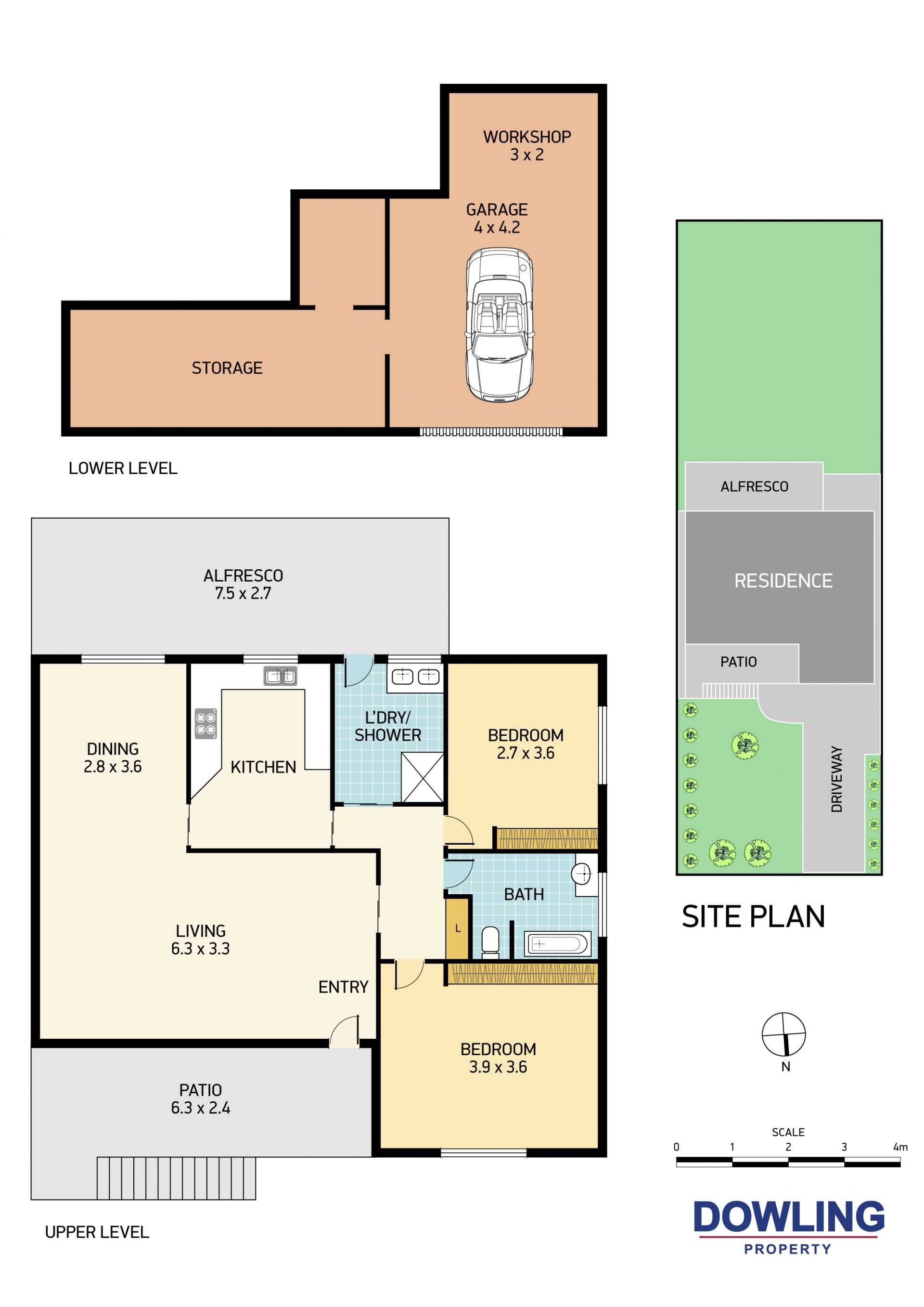 2 Bedrooms, central bathroom, lounge dining, kitchen and laundry with extra shower.